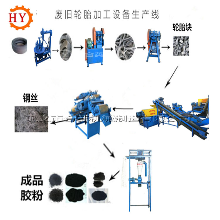 2.輪胎膠粉生產(chǎn)線(xiàn)配置:切圈機/切條機;切塊機;滾筒磨粉機,輸送帶上料機,磁選機,精細磨粉機,纖維分離自動(dòng)裝袋機;