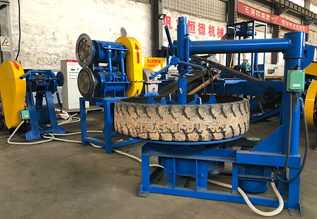 將輪胎置于園盤(pán)平臺之上,旋轉中間手輪,三爪卡架就會(huì )牢固的卡住輪胎的內圈,啟動(dòng)電源,工作平臺旋轉,切割刀具根據需要進(jìn)刀,緩慢切入輪胎,循序漸進(jìn),直至將輪胎側面切下